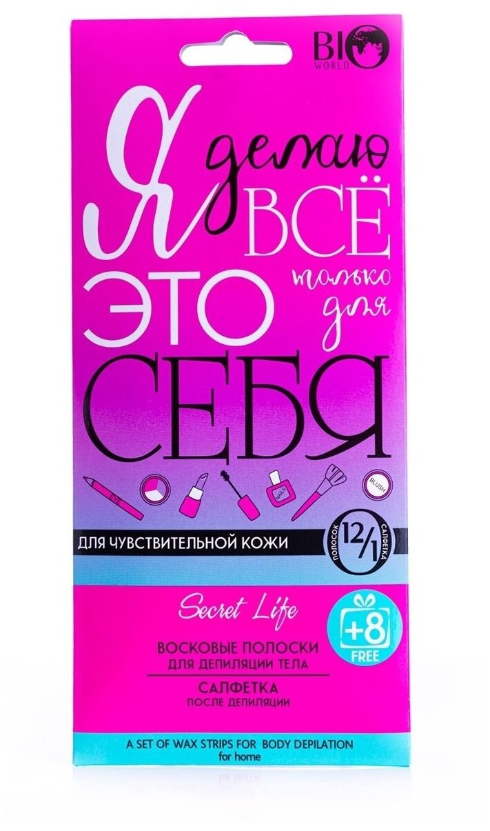BIO WORLD SECRET LIFE Набор для депиляции тела для чувствительной кожи 12 полосок+ 1салфетка интересное: