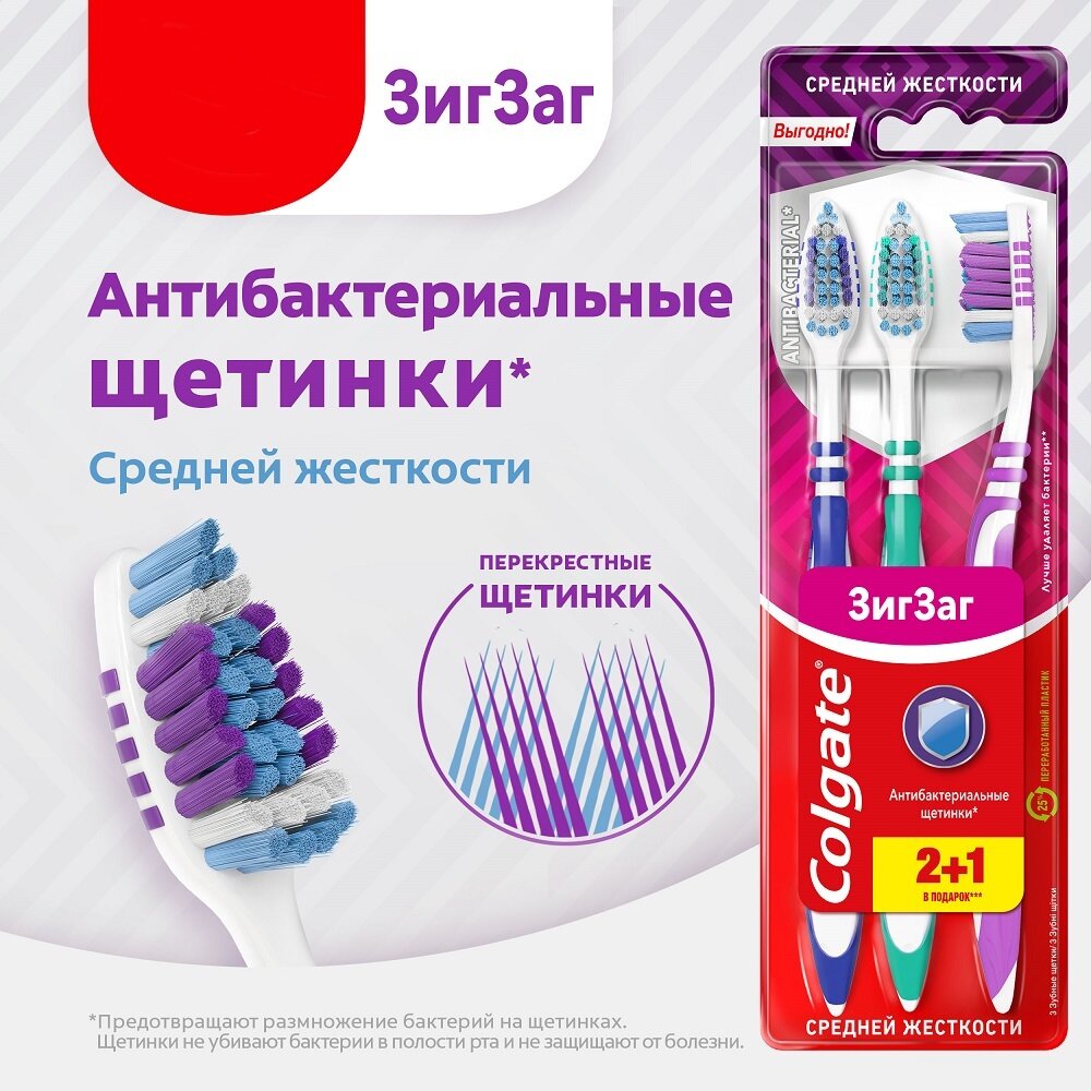 COLGATE Зиг Заг многофункциональная зубная щетка, средней жесткости, промоупаковка 2+1