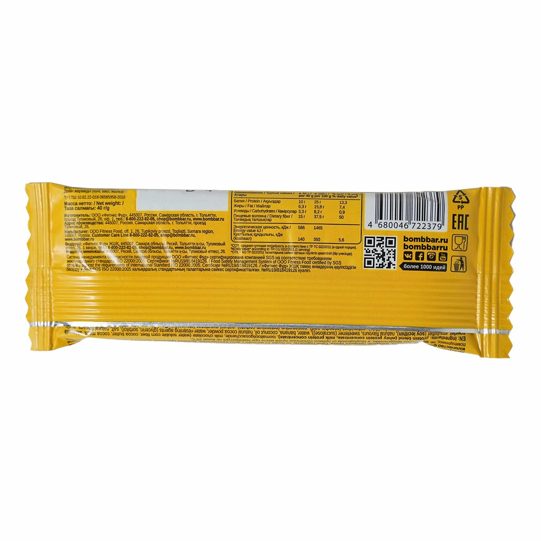 Bombbar, Протеиновый батончик в шоколаде 5шт х 40г (банановый пудинг)
