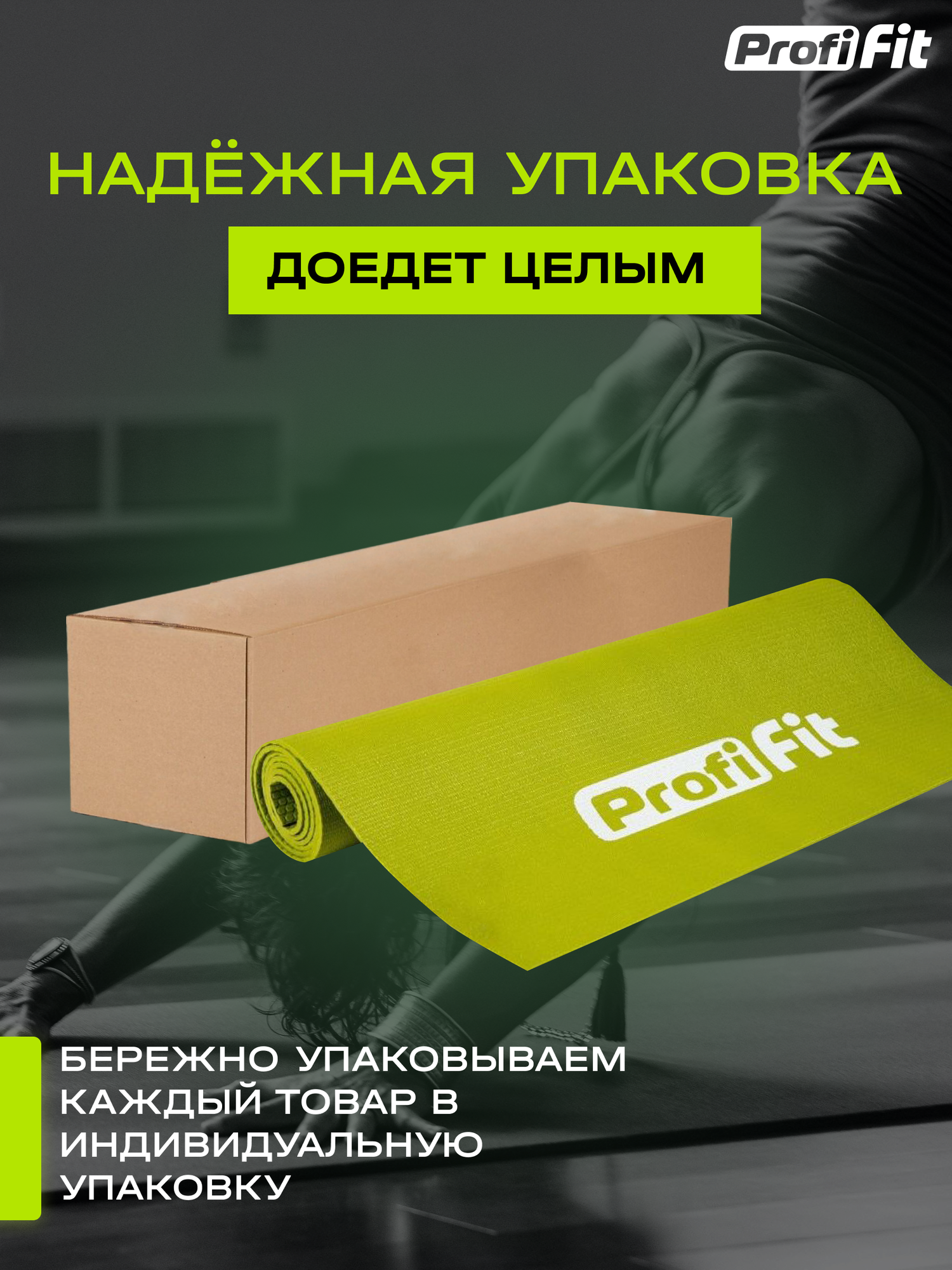 Коврик для йоги и фитнеса нескользящий, PROFI-FIT, ПРОФ, 1730х610, 4 мм, зеленый