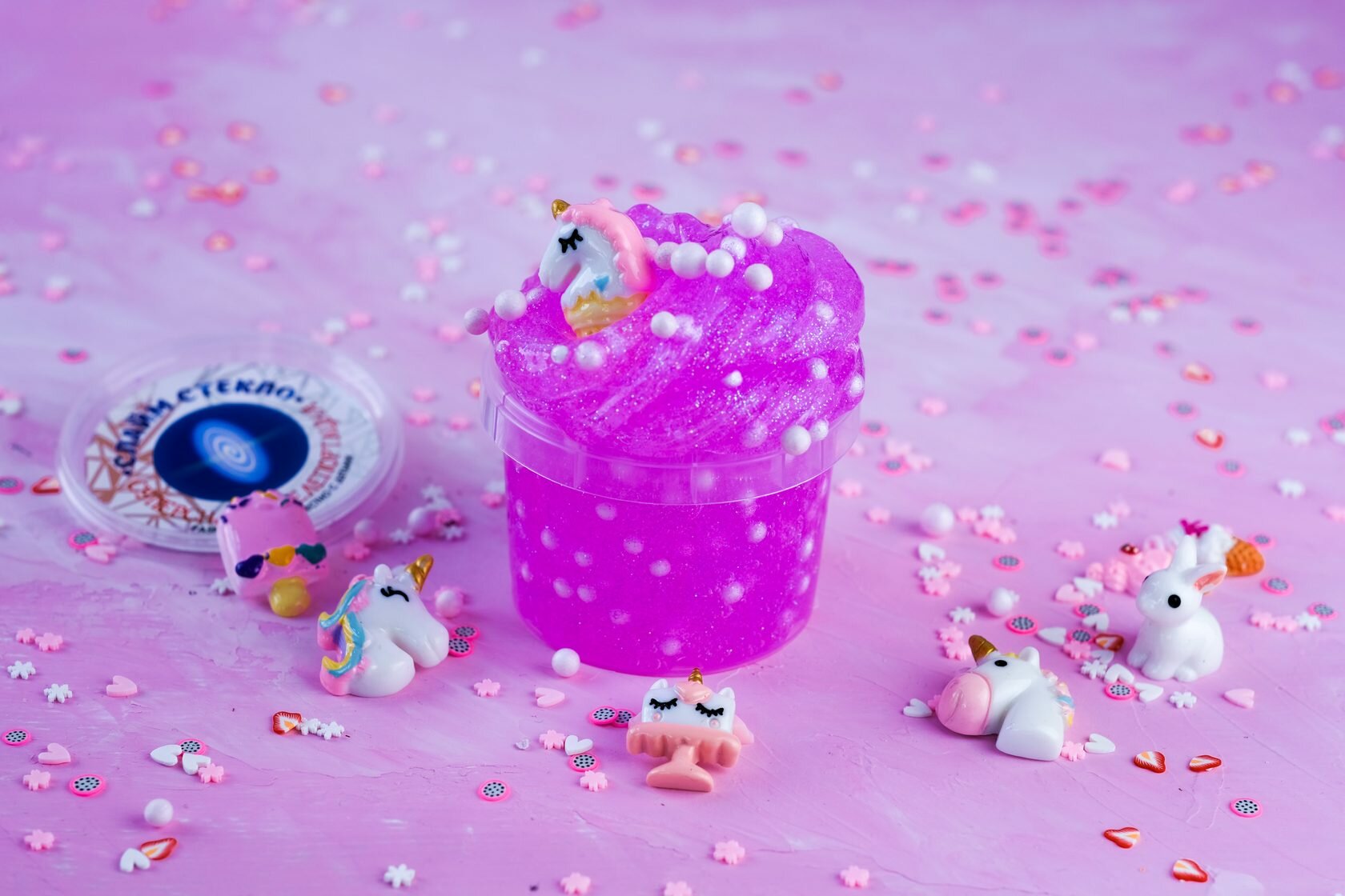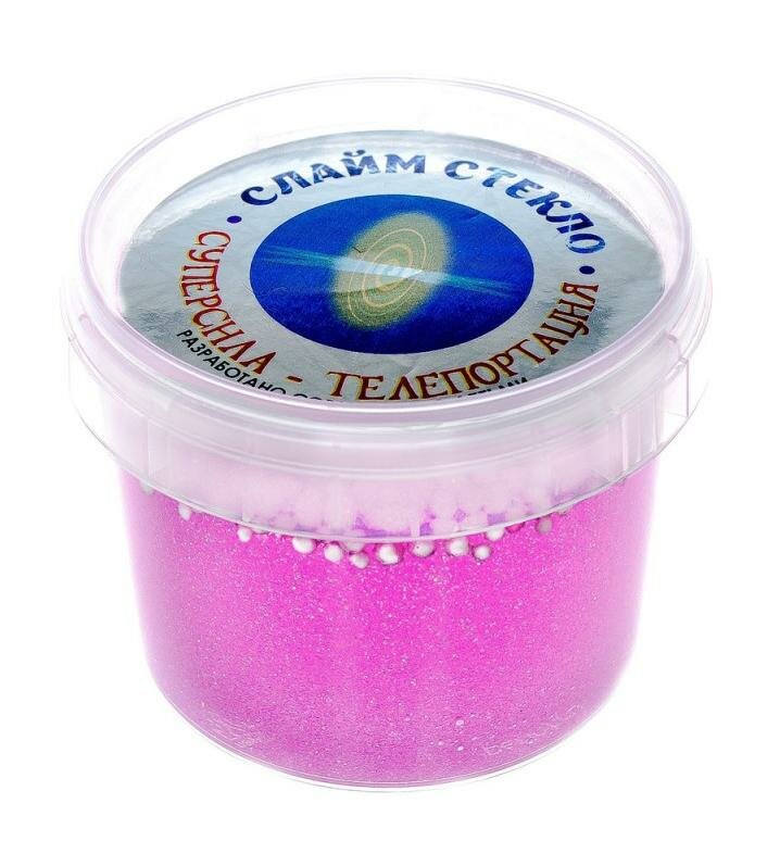 Слайм Стекло "Телепортация" с малиновыми блестками с шариками, 90 г (00-00001261)
