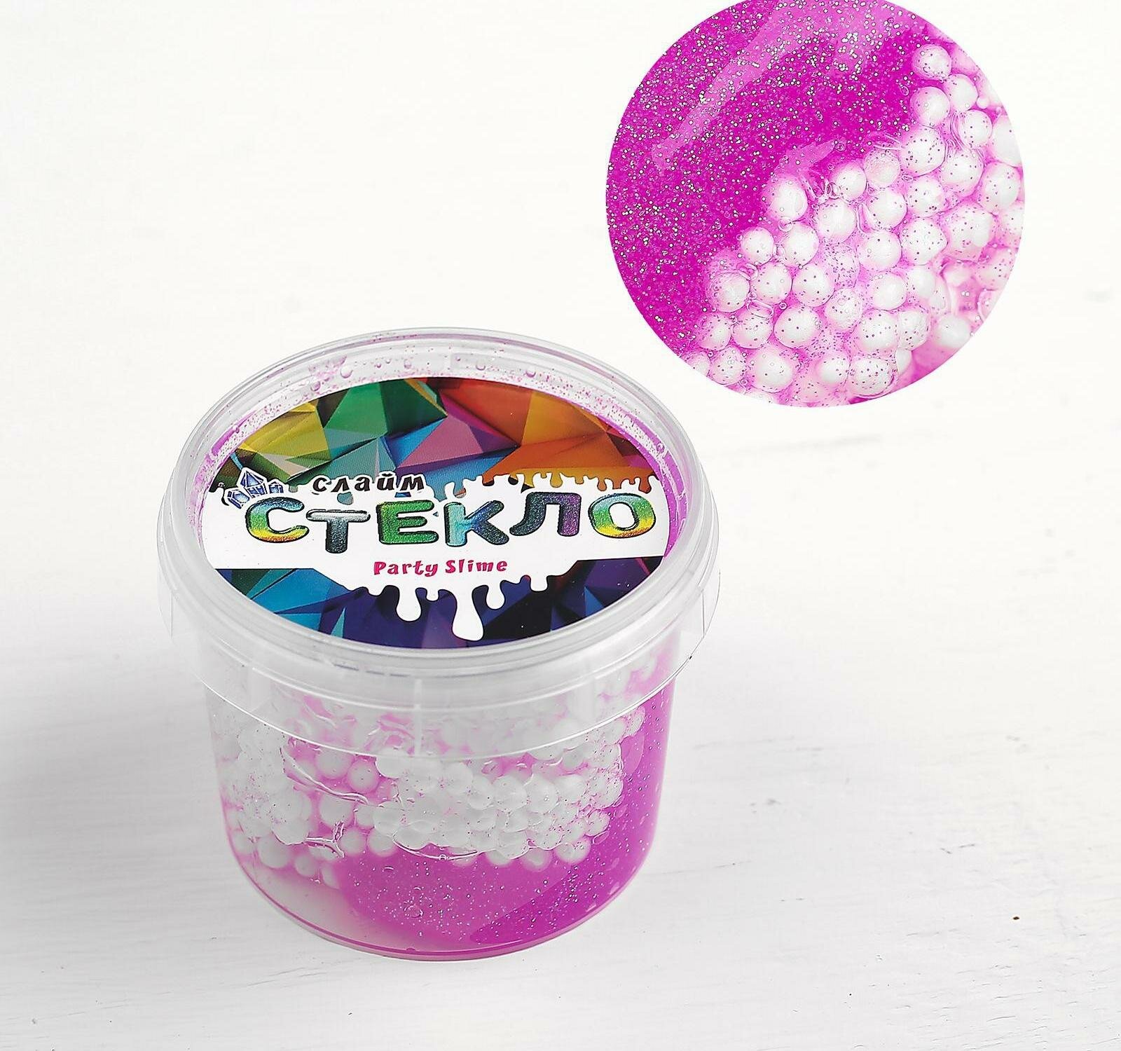 Слайм "Стекло" Слайм «Стекло» с малиновыми блёстками, с шариками, 90 г