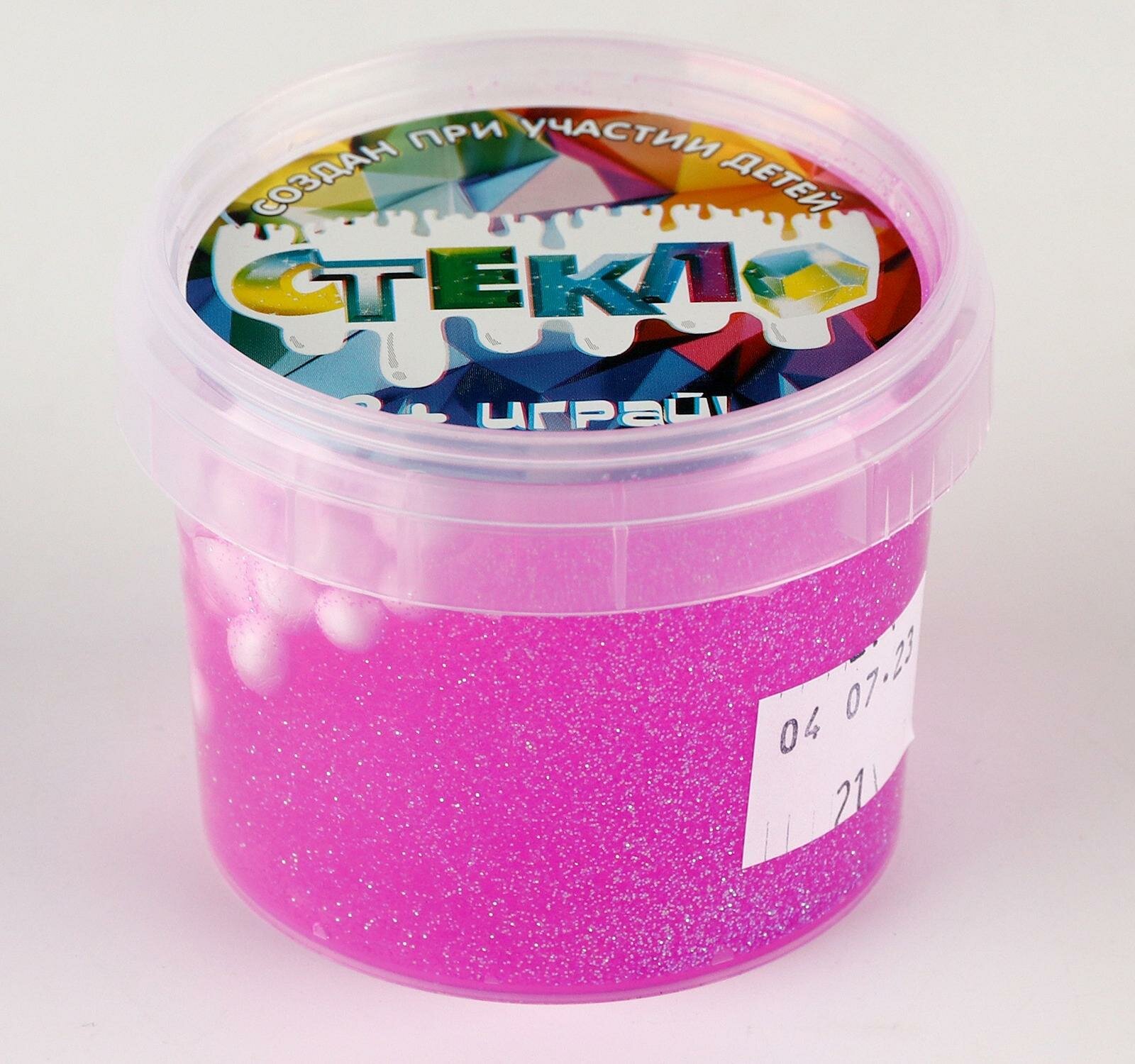 Купить Слайм Стекло с малиновыми блёстками, с шариками, 90 г