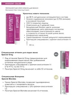 10.370 Экстра светлый блондин золотисто-фиолетовый для седых волос / Перманентная крем-краска для волос MYPOINT 60 мл
