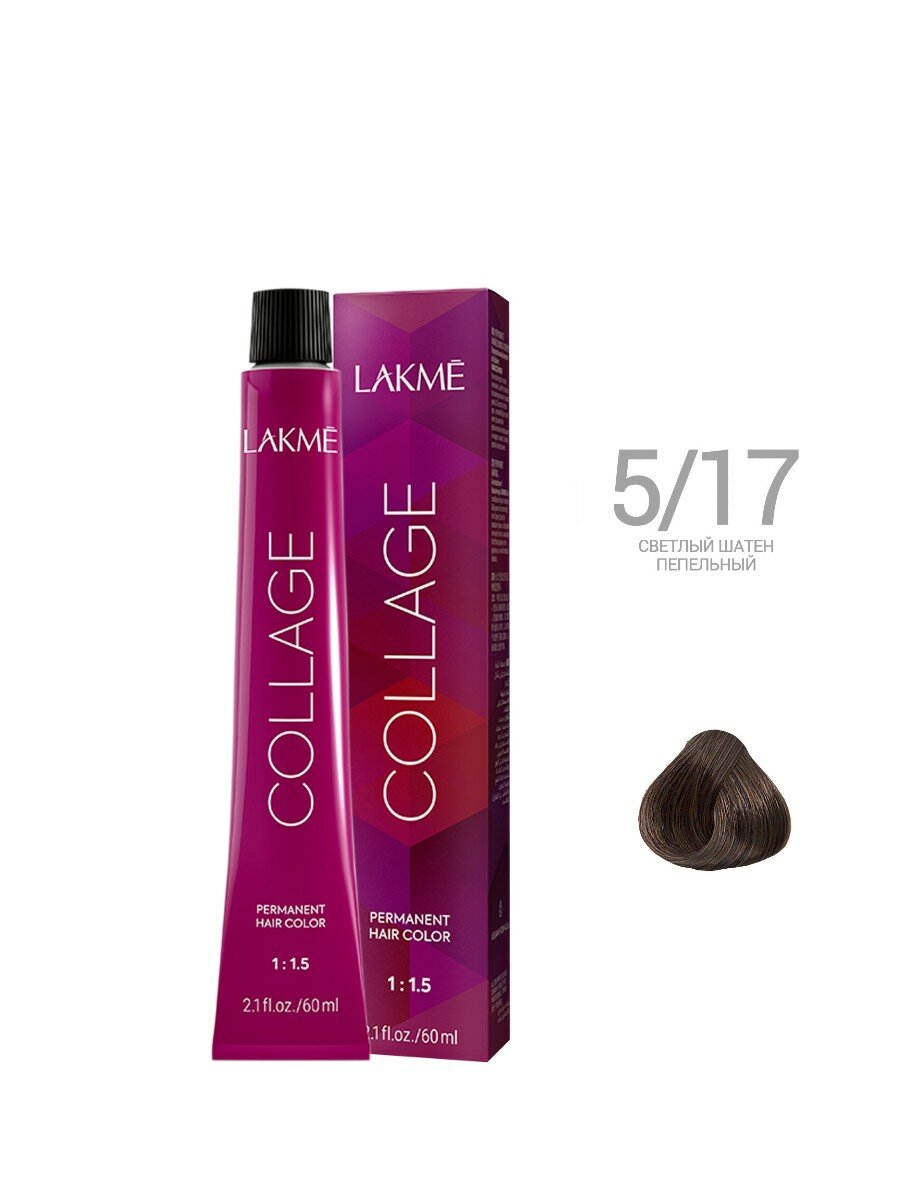 Купить LAKMÉ, COLLAGE, Перманентная крем-краска для волос №5/17, Светлый шатен пепельный, 60 мл