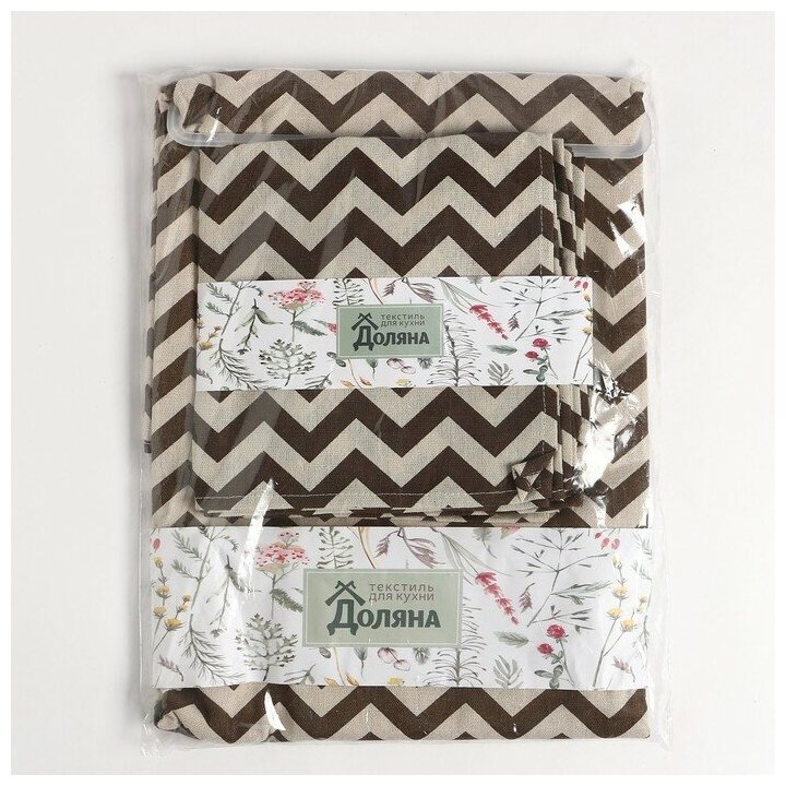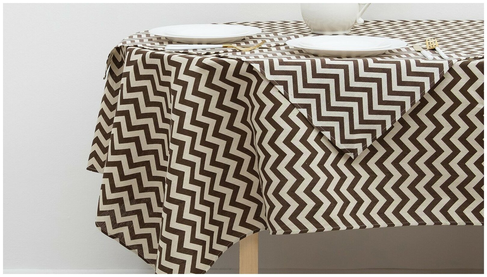 Набор «Доляна» "Зигзаг коричневый": скатерть 145х200см/салфетки 40х40см 4шт, коричневый, 100%пэ, рог 200 гр/м