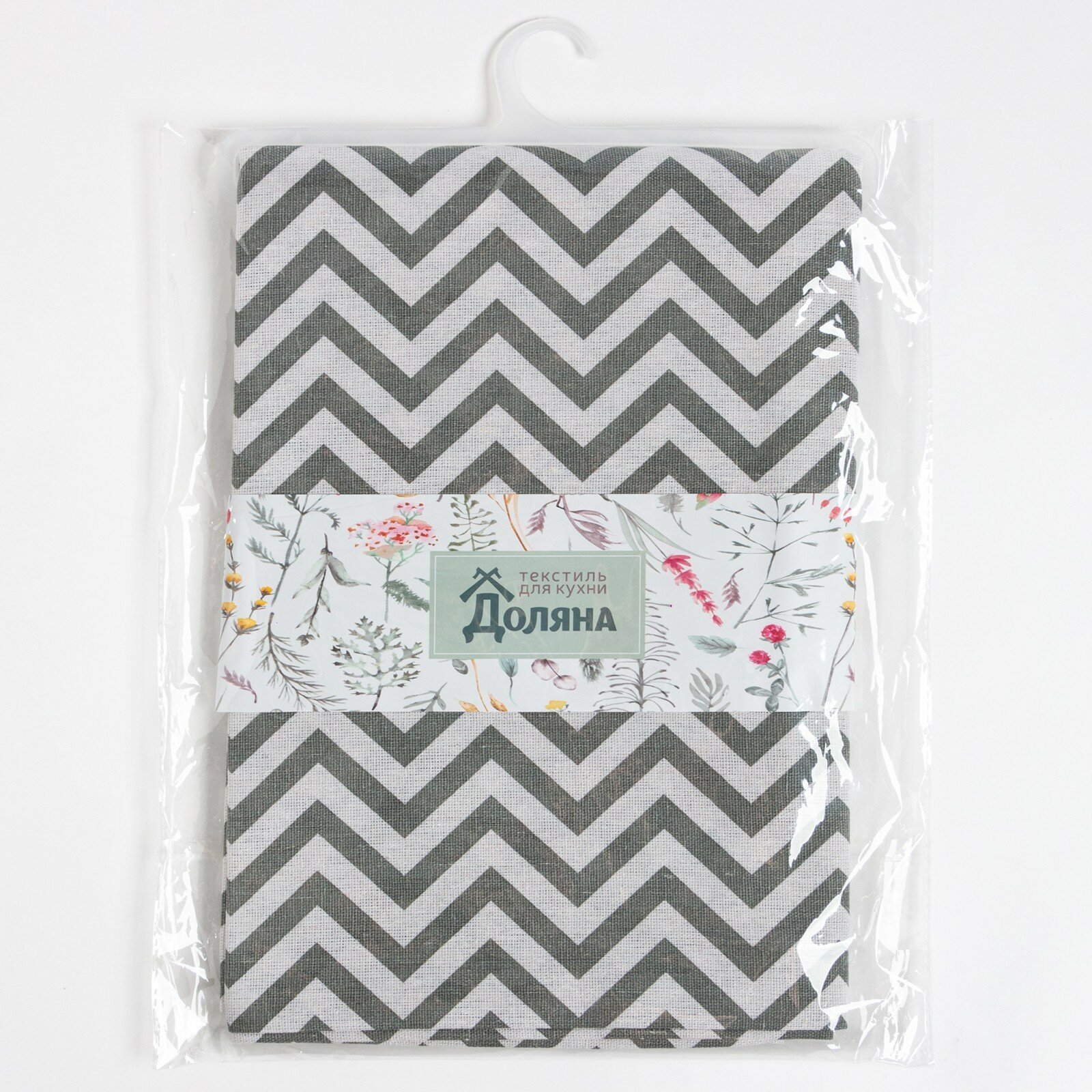 Купить Доляна Набор Доляна скатерть 145х200см/салфетки 40х40см 4шт, Зигзаг сер, 100%пэ, рогожка 200 гр/м