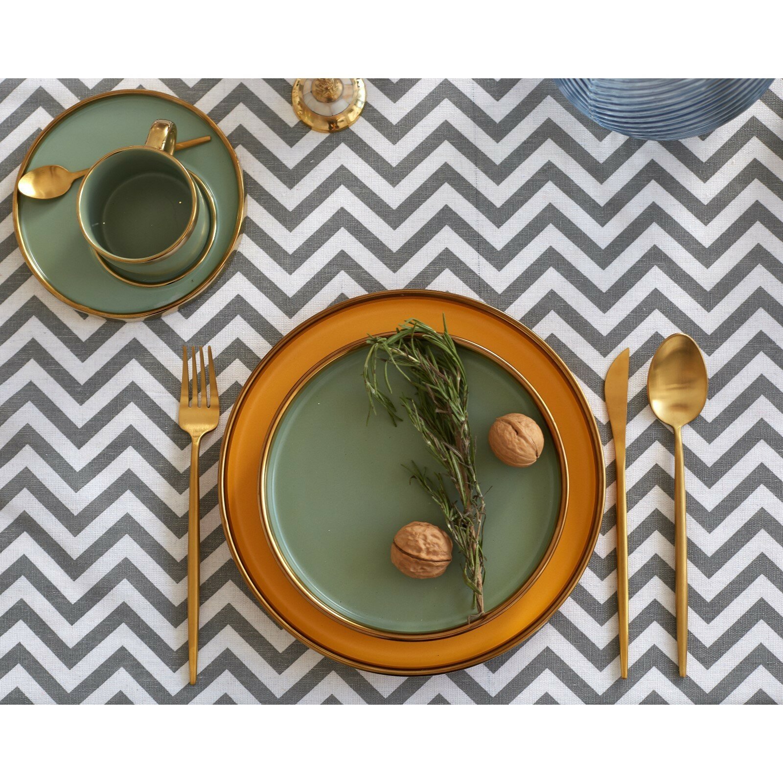 Набор Доляна скатерть 145х200см/салфетки 40х40см 4шт, Зигзаг сер, 100%пэ, рогожка 200 гр/м Доляна 35 .