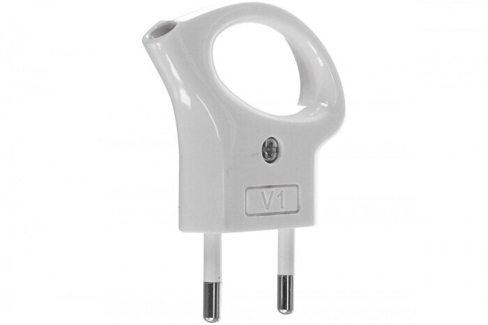 Вилка ЭРА V1 без заземления 10A с кольцом непрямой ввод белая