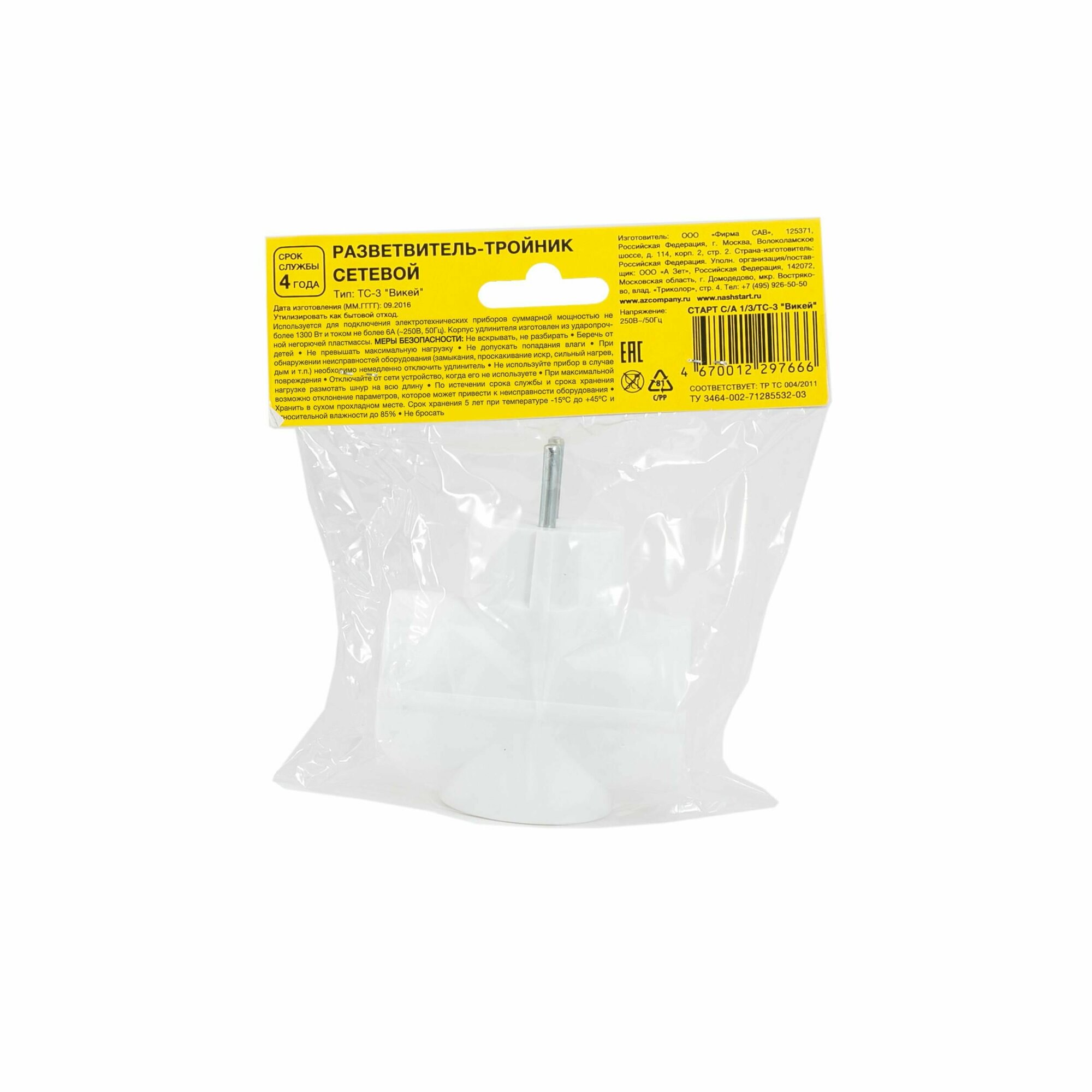 Купить СТАРТ С/А 1/3/ТС-3 6 А белый 3 шт. тройник