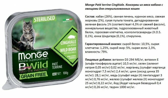 Ниже Вы можете прочитать отзывы на Влажный корм для стерилизованных кошек Monge BWILD Feed the Instinct, беззерновой, с кабаном, с овощами 2 шт. х 100 г (паштет), ознакомится с подробными характеристиками, посмотреть интересные обзоры и фотографии на Влажный корм для стерилизованных кошек Monge BWILD Feed the Instinct, беззерновой, с кабаном, с овощами 2 шт. х 100 г (паштет).
