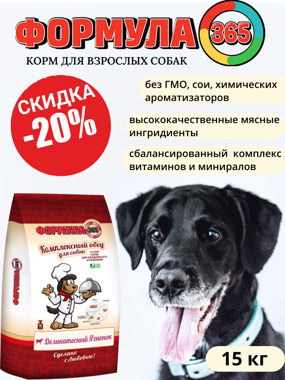 Сухой корм для собак ФОРМУЛА-365 деликатесный ягненок для всех собак 15 кг