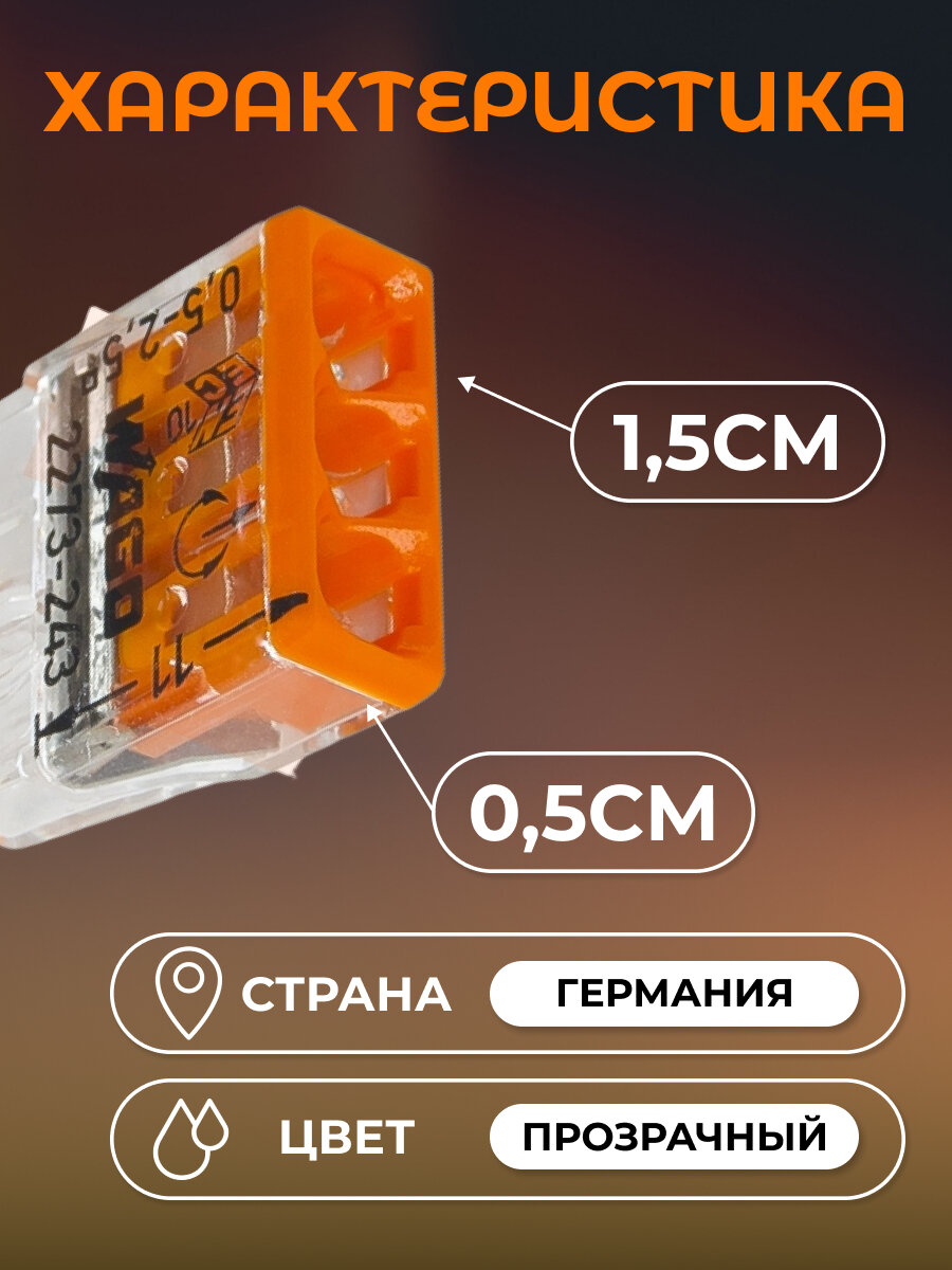 Клеммы для проводов зажимные, клемма 222-412 Электро (Аналог Wago/ ваго) - 50 шт