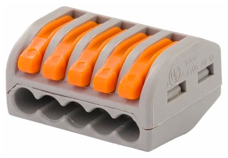 Клемма соединительная, 5 контактов, сечение провода 0.08-2.5 мм 222-415 10шт