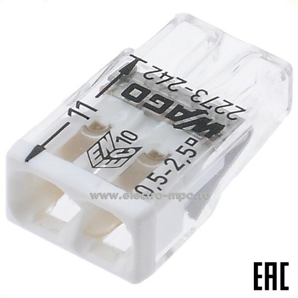 Клемма соединительная Wago 2273-242 2-х проводная с пастой 0.5-2.5 мм 20 шт.
