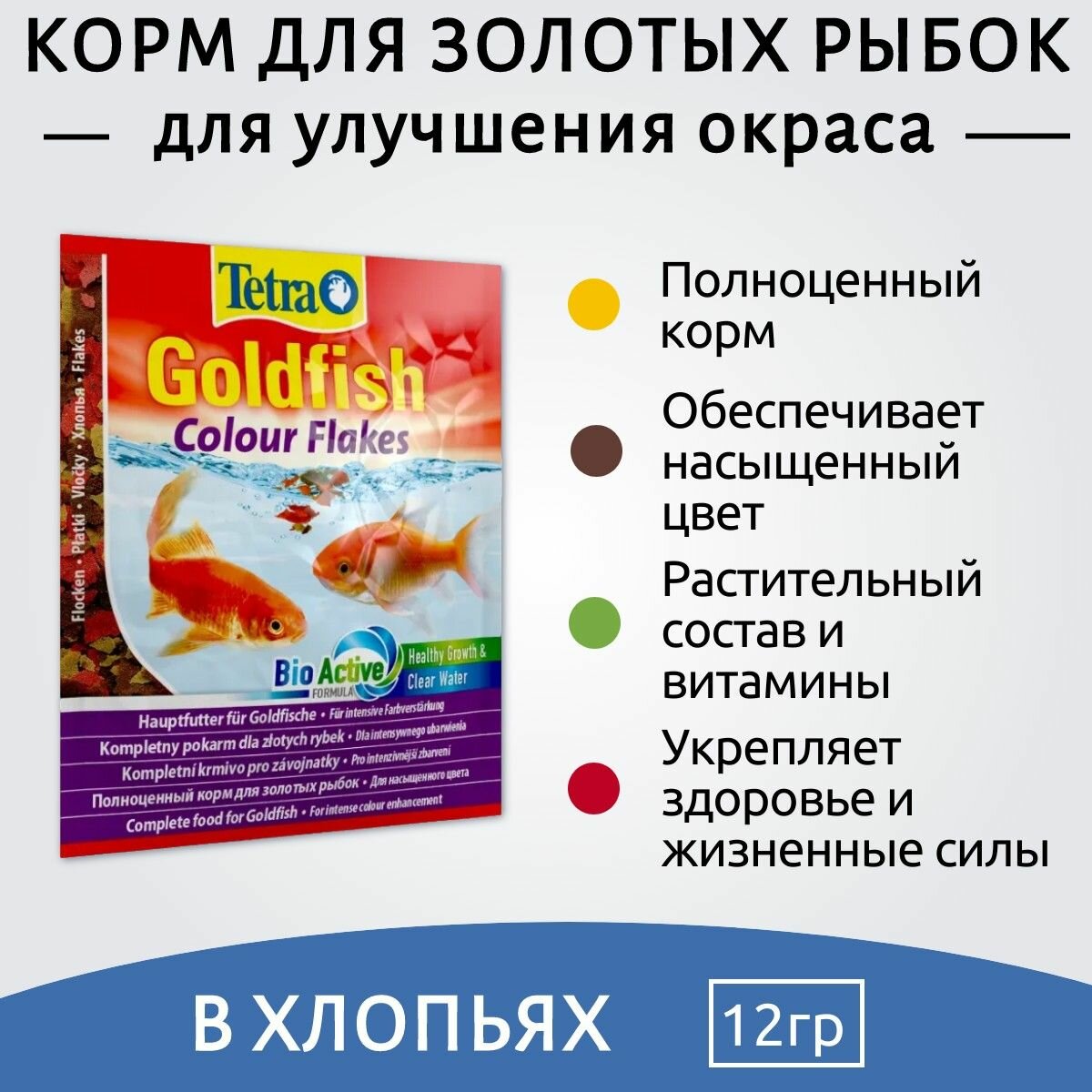 Купить Tetra Goldfish Colour Flakes Корм для золотых рыбок для усиления естественной окраски хлопья 12г, 1 шт