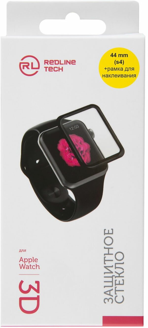 Купить Защитное стекло Red Line для Apple Watch S4 44 мм Full screen (3D) с рамкой, бесцветный/черный