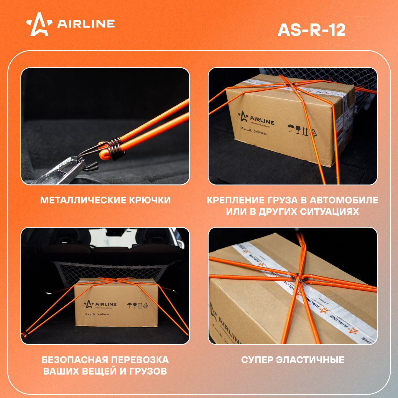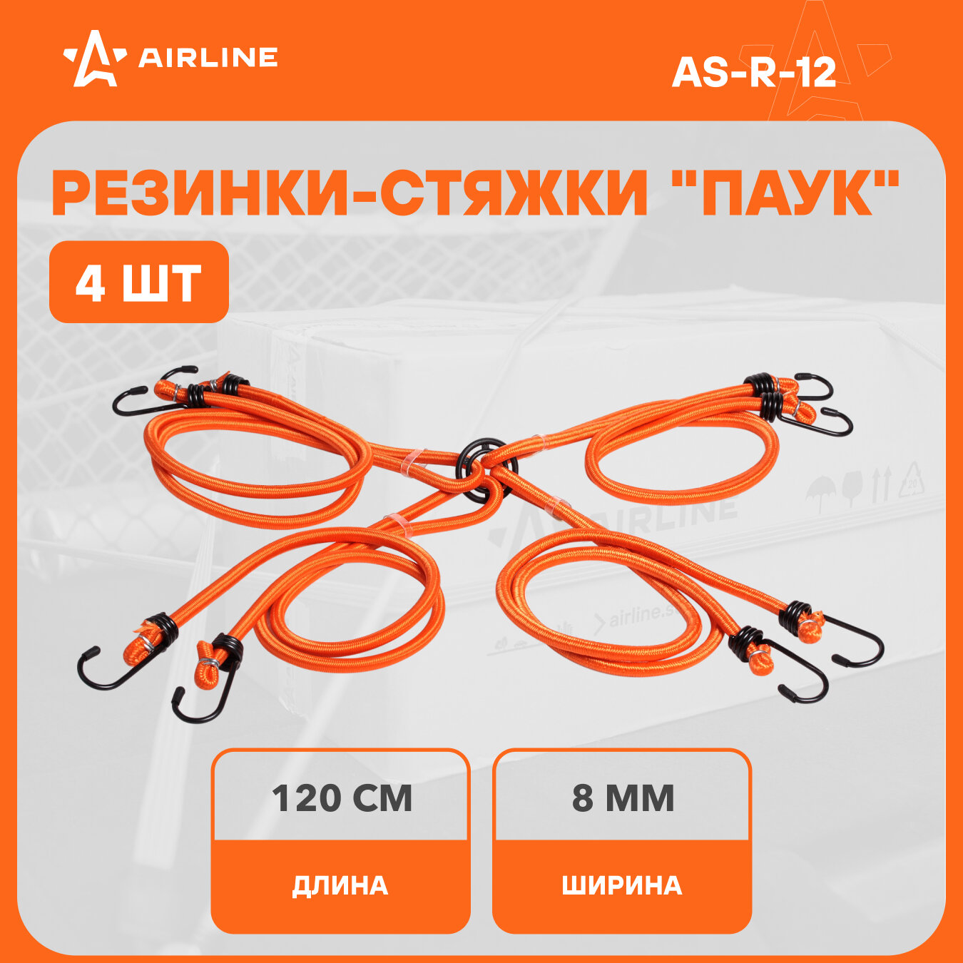 Стяжка крепления груза Паук Airline (80см,D-8мм) (4шт.с мет.крюч) (AS-R-05) AIRLINE AS-R-05