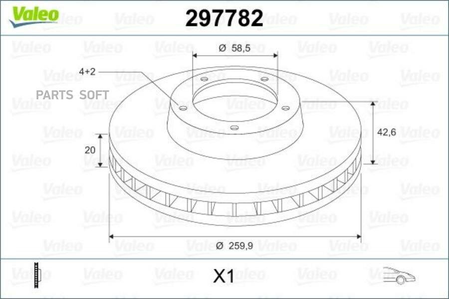VALEO 297782 Диск тормозной передний, 259,9/20/42,6мм