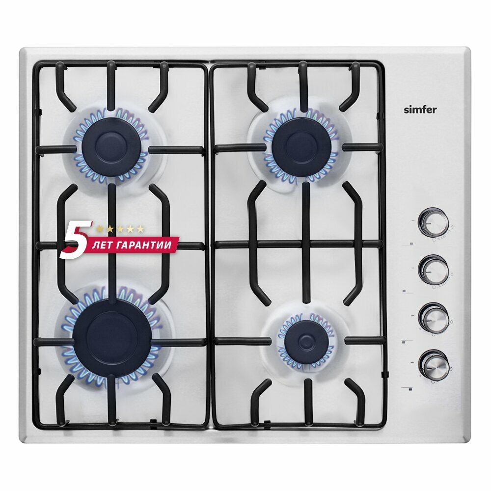 Газовая варочная панель Simfer H60Q40W570, решётки LAMA, газконтроль, автоподжиг