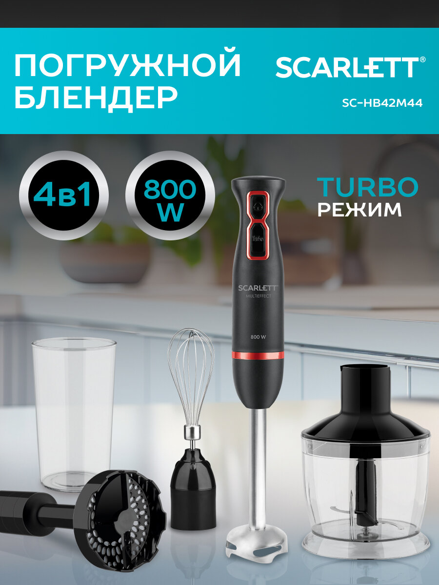 Блендер SCARLETT SC-HB42M44, погружной, черный/красный интересное: