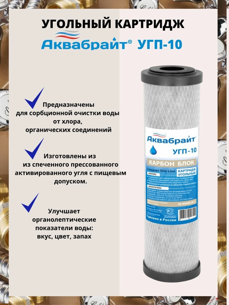 Картридж угольный Аквабрайт УГП-10, для очистки воды от хлора и органических соединений, Карбон Блок (SL10)
