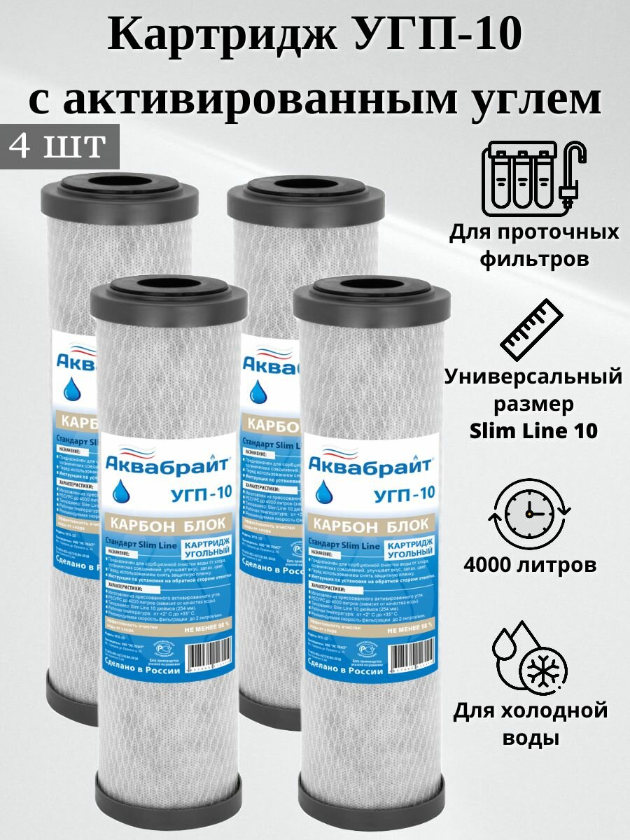 Картридж угольный Аквабрайт УГП-10, для очистки воды от хлора и органических соединений, Карбон Блок (SL10)