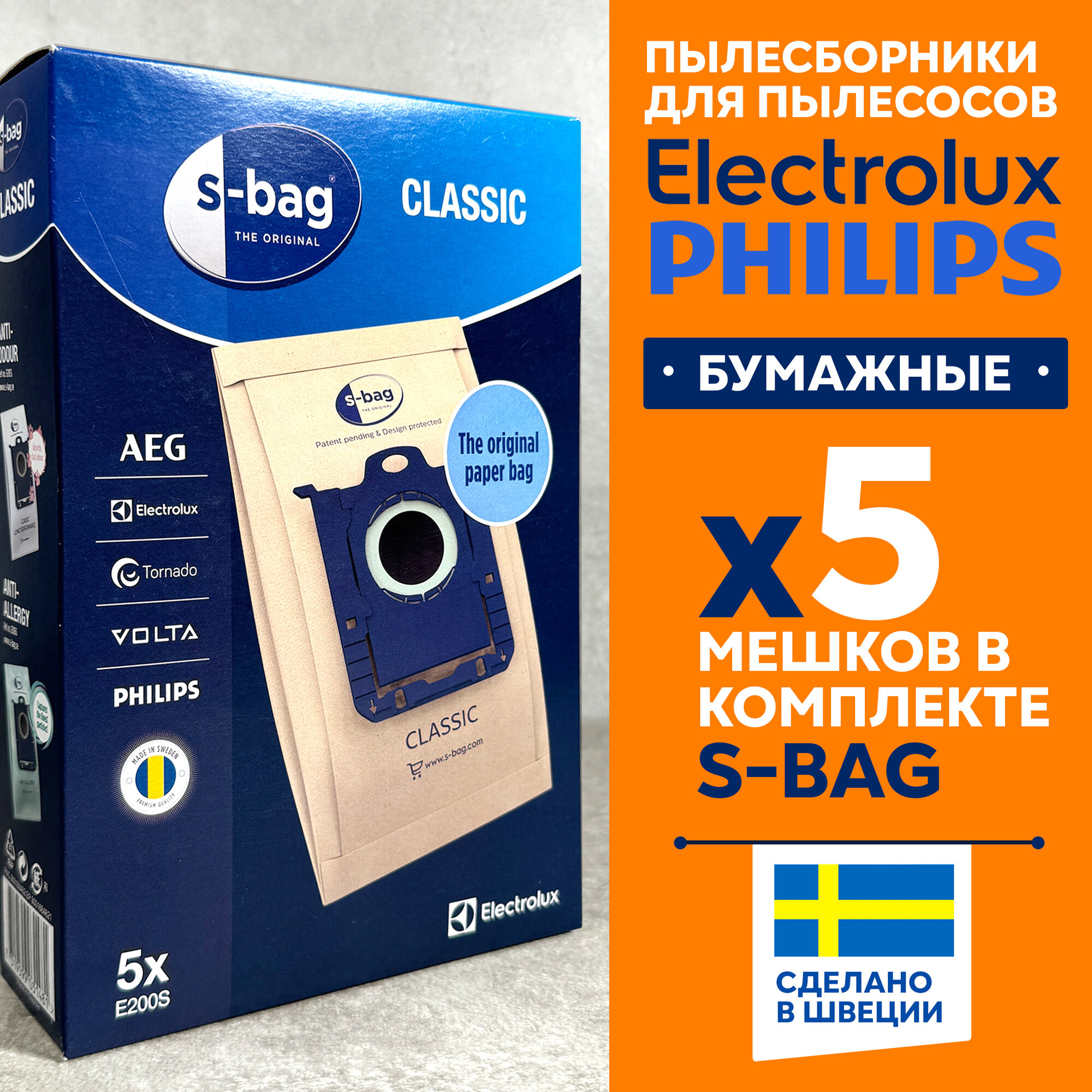 Купить Бумажные мешки для пылесоса Philips, Electrolux E200S, пылесборники Тип S-bag. Оригинал!