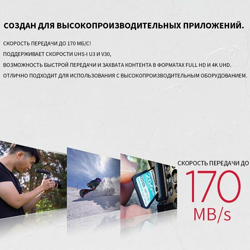 Долго выбирал. Честно скажу взял из-за цены. На момент покупки 2 флешки по 256 Гб обошлись в 5500. Использую для записи видео. 4К-200мб/сек тянет отлично. Камера Fujifilm XT-3. Если рассматривайте для видео то рекомендовал бы брать с запасом(для свадеб,интервью и т.д) По скорости ничего сказать не могу т.к передаю по проводу(по проводу скорость низкая) |