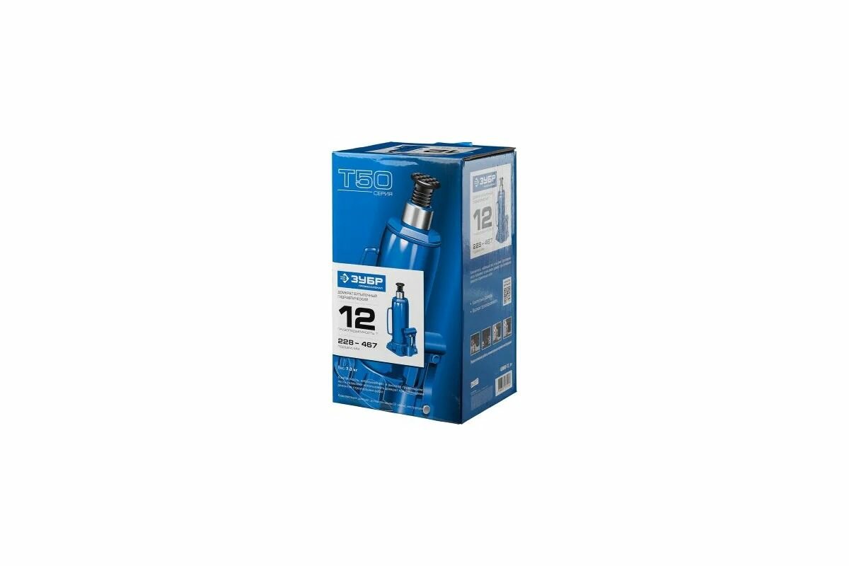 ЗУБР Домкрат гидравлический бутылочный T50, 12т, 228-467мм, Профессионал 43060-12 43060-12_z01