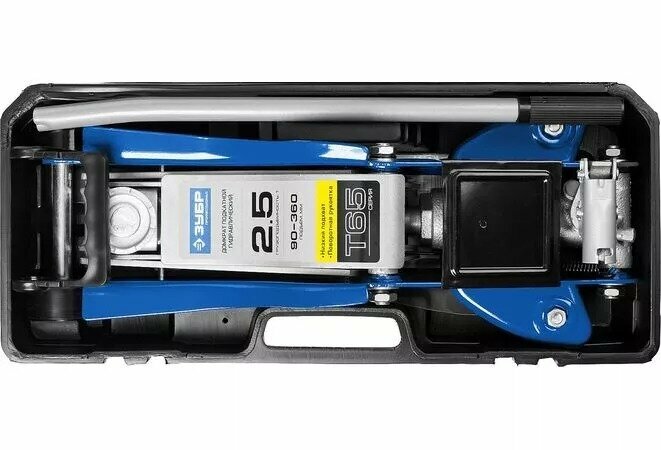 ЗУБР Т-65-K 2.5т 90-360мм подкатной домкрат с низким подхватом и поворотной ручкой в кейсе, Професси