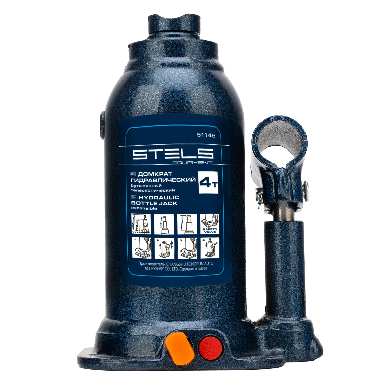 Домкрат гидравлический бутылочный телескопический Stels 51145, подъем 170-420 мм, 4 т Stels 9404723 .