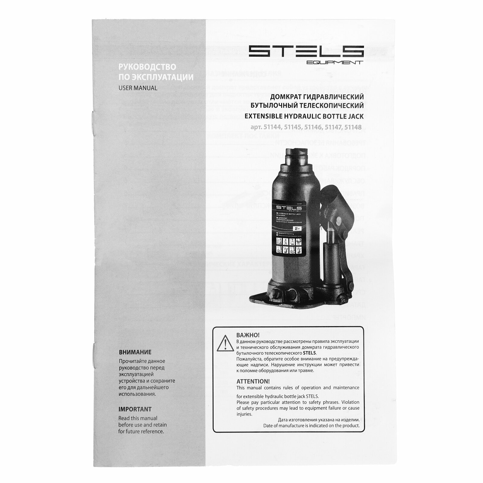 Домкрат гидравлический бутылочный Stels Equipment STELS 4 т, подъем 170-420 мм, 51145