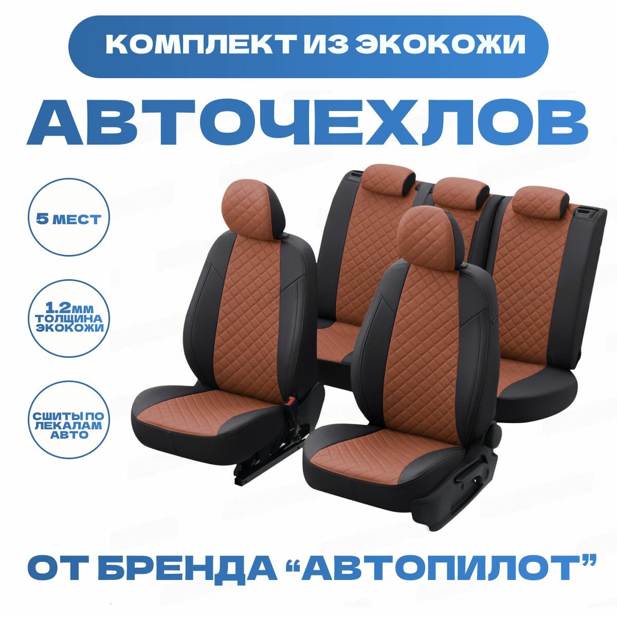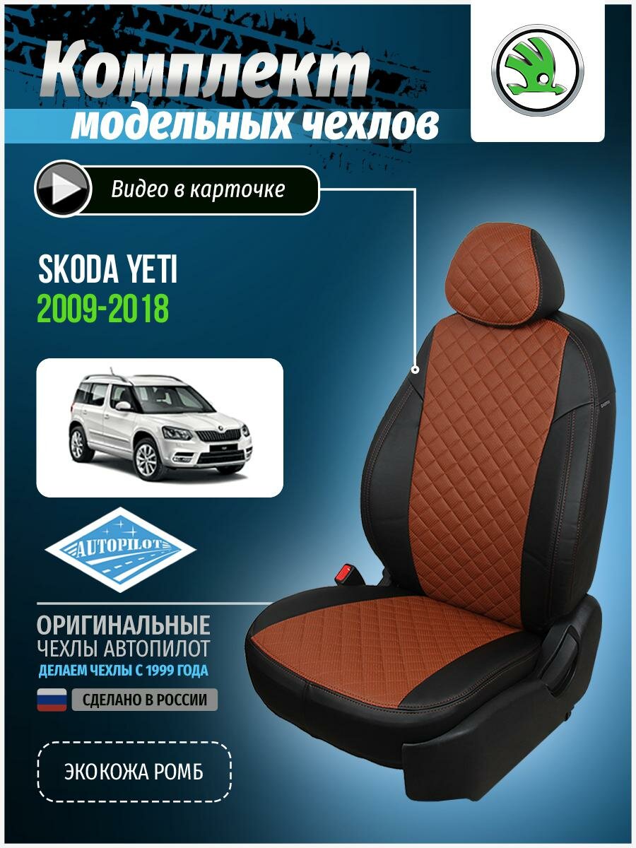 Купить Чехлы на автомобильные сидения Автопилот для Skoda Yeti (передние спинки одинаковые) с 09г. (Экокожа ромб, Черный + Коричневый)