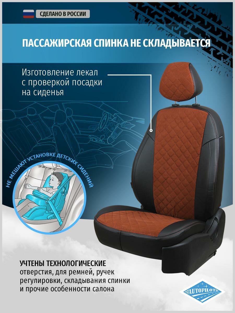 Комплект чехлов Автопилот Алькантара ромб Skoda Yeti (передние спинки одинаковые) с 09г. Коричневый +