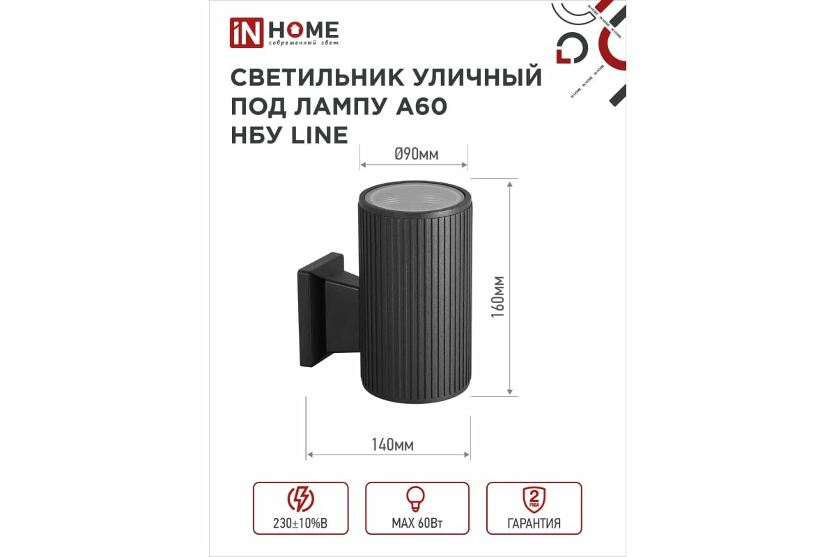 Светильник НБУ LINE-1хA60-BL E27 IP65 230В уличный настенный односторонний алюм. под лампу 1хA60 черн. IN HOME 4690612037936
