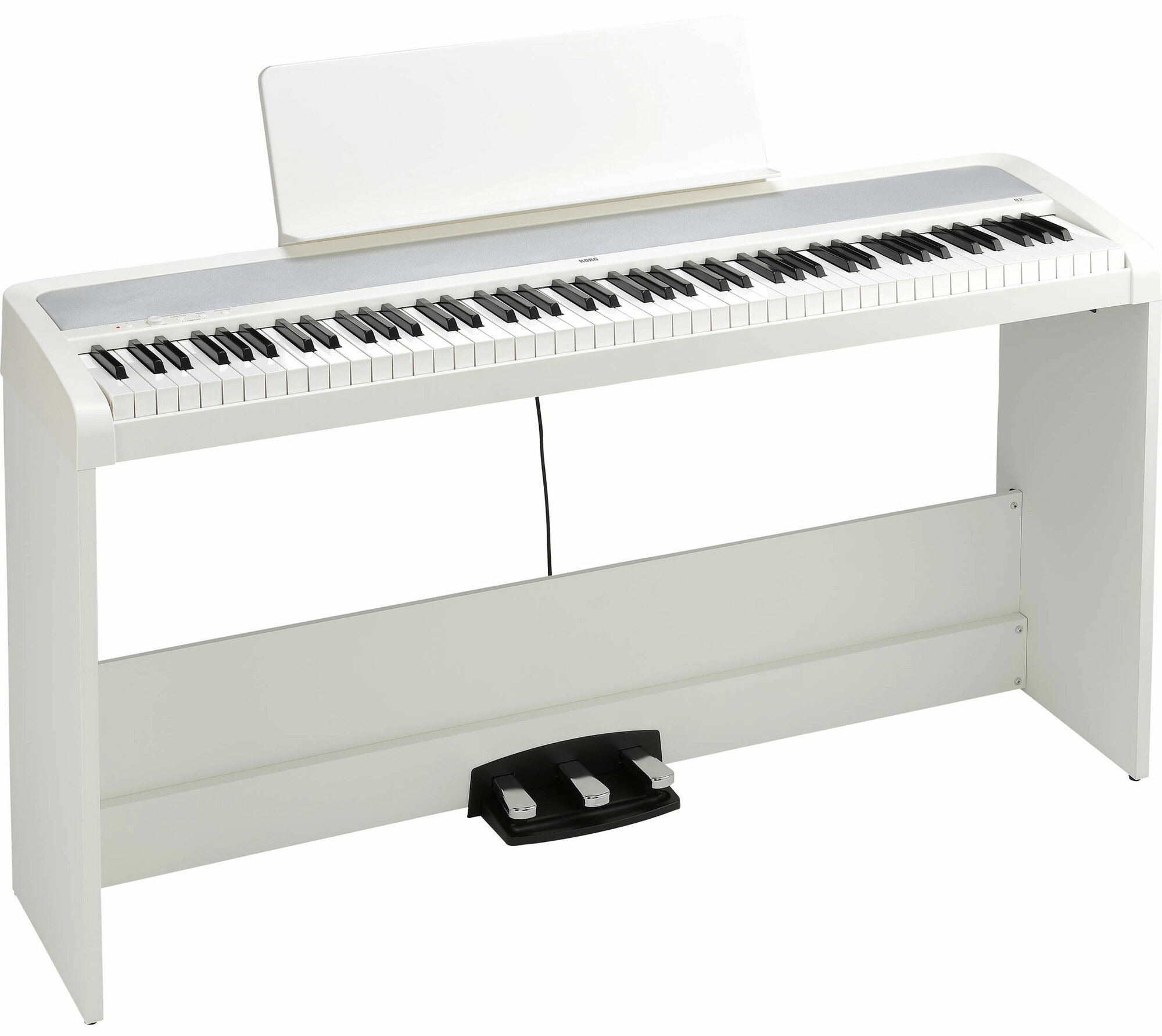 KORG B2SP WH цифровое пианино, взвешенная клавиатура, 12 тембров, стойка, педали и адаптер питания в