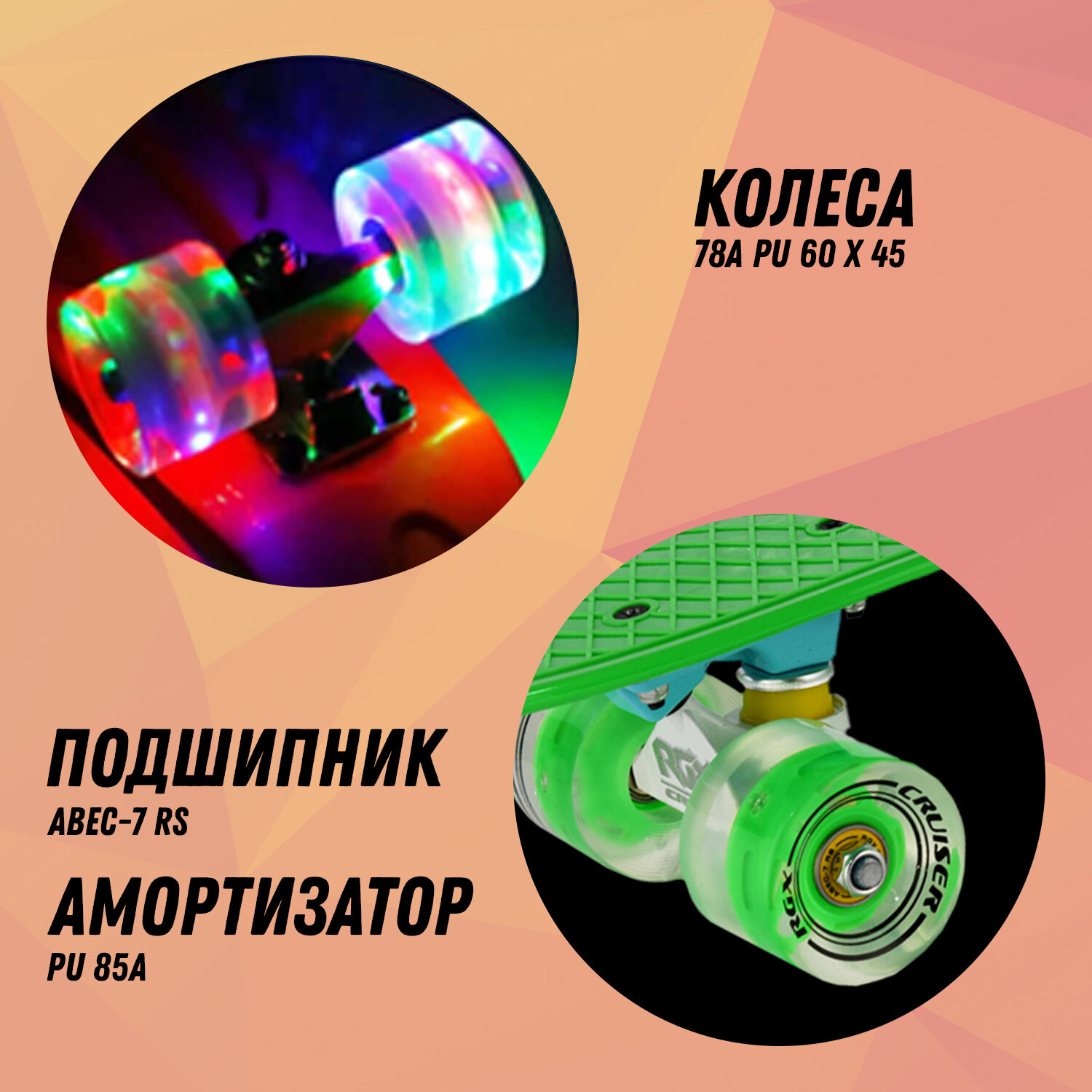 Купить Круизер (Пенни борд)PNB-01GW (22") Green светящиеся колеса