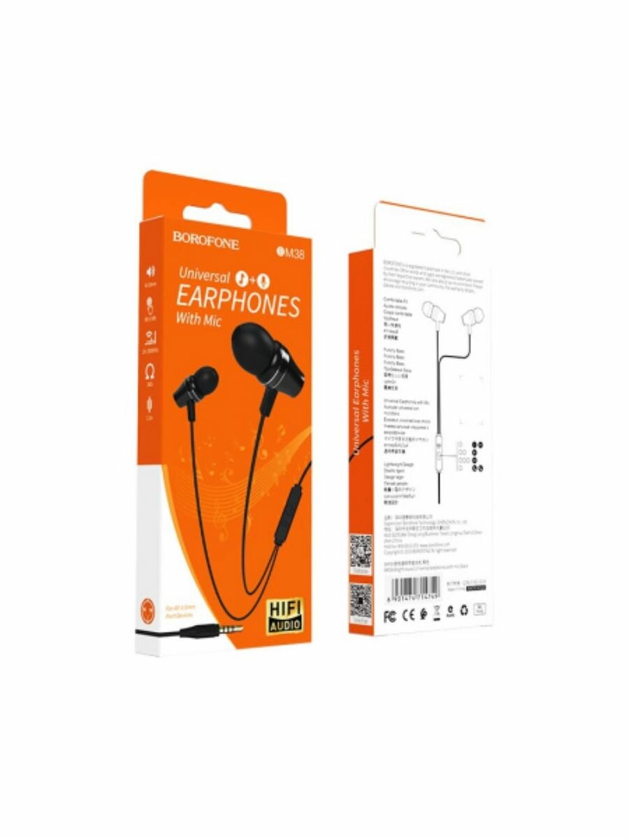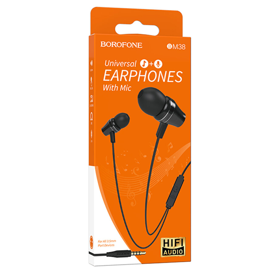 Наушники внутриканальные Borofone BM38, Bright sound, микрофон, кнопка ответа, регулятор громкости, цвет чёрный