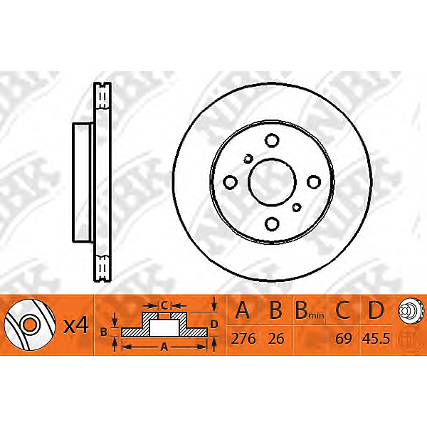 Тормозной диск передний вент.[276X26] 4 отв.[MIN 2] (упаковка 2 шт.), NiBK RN1237