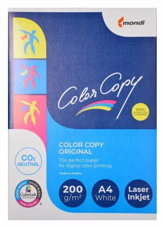 Бумага COLOR COPY, А4, 200 г/м2, 250 л., для полноцветной лазерной печати, А++, Австрия, 161% (CIE), A4-26461