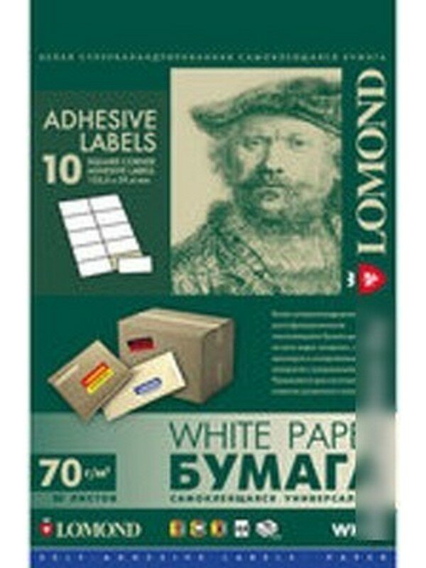 Бумага самоклеящаяся А4 50л. Lomond, белая, 10 фр. (105*59,4), 70г/м2