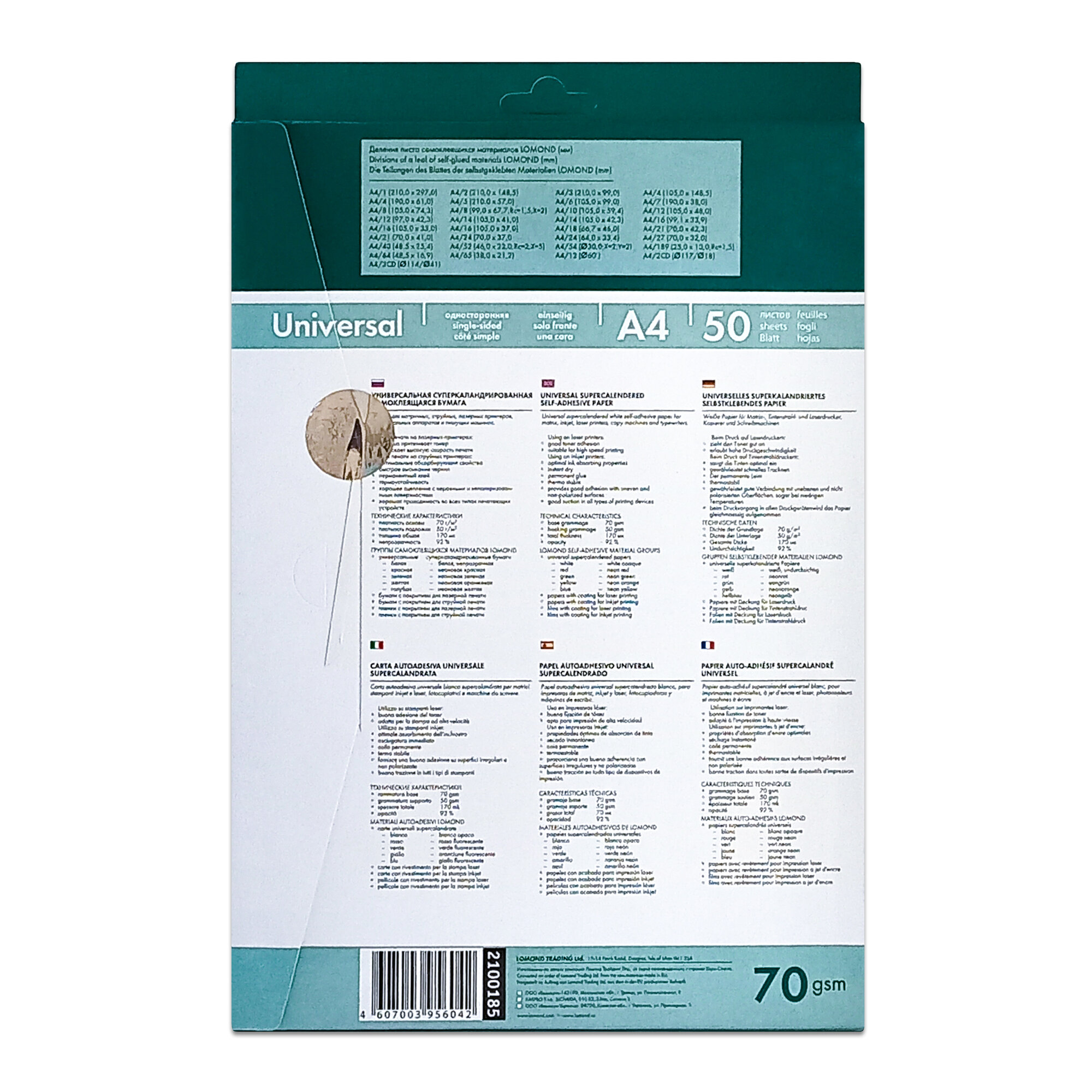 Бумага самоклеящаяся А4 50л. LOMOND 27 фр. (70*32)