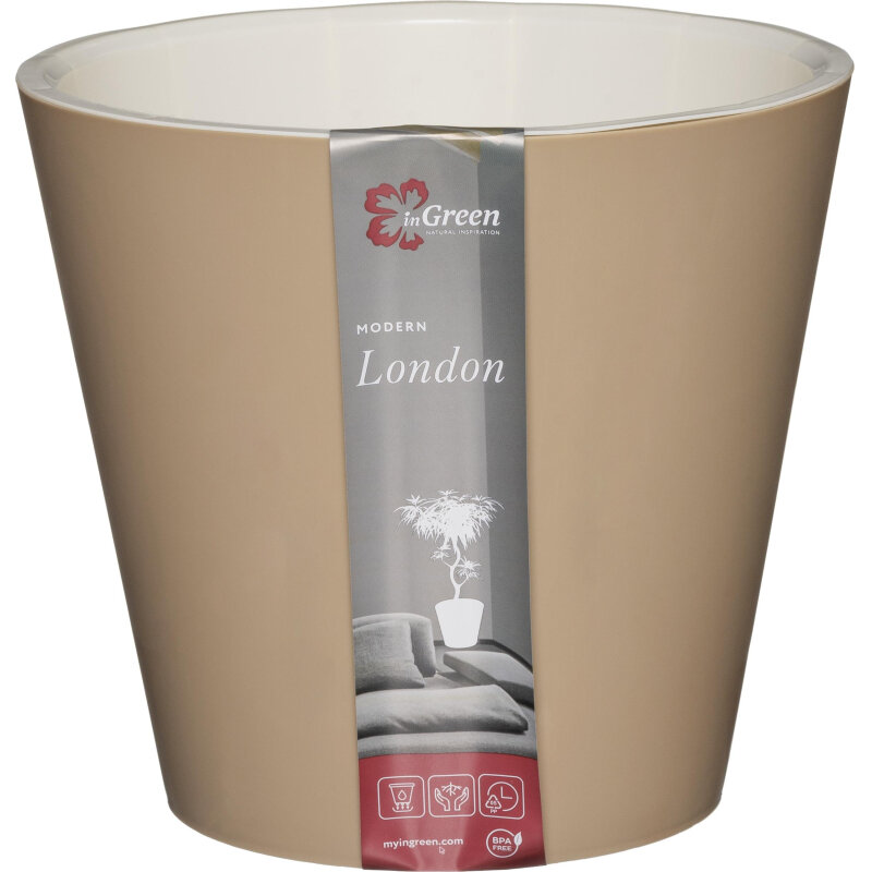 Горшок InGreen London IG1552, пластик, с дренажным отверстием, бежевый, 1 л