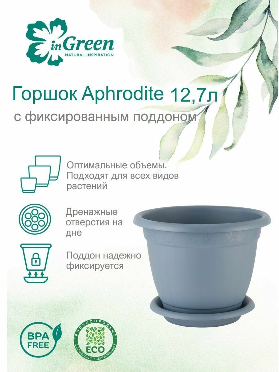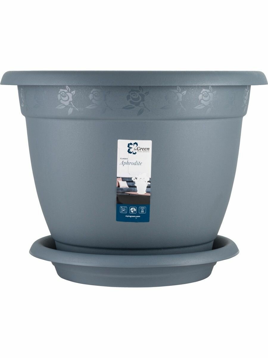 СохранитьГоршок для цветов InGreen Aphrodite D 340 mm, 12,7л с подставкой №7 серый интересное: