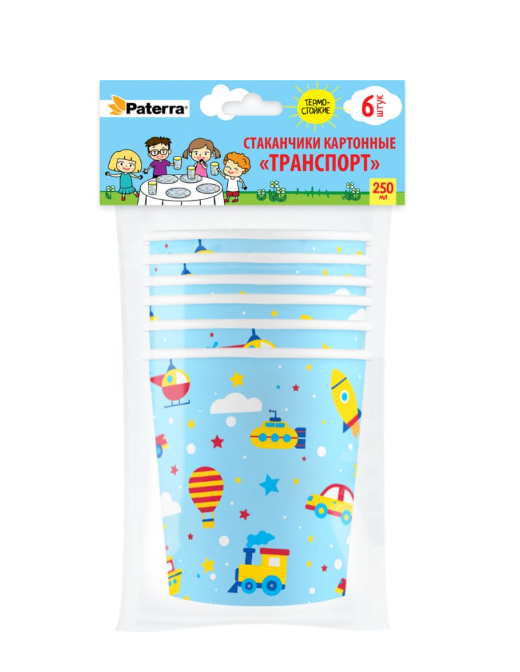 Paterra Стаканчики картонные Paterra Транспорт 250 мл, 6 шт