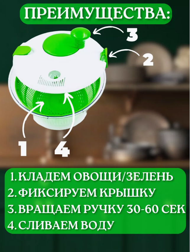 Форма для мойки и сушки зелени и овощей, белый/зеленый интересное: