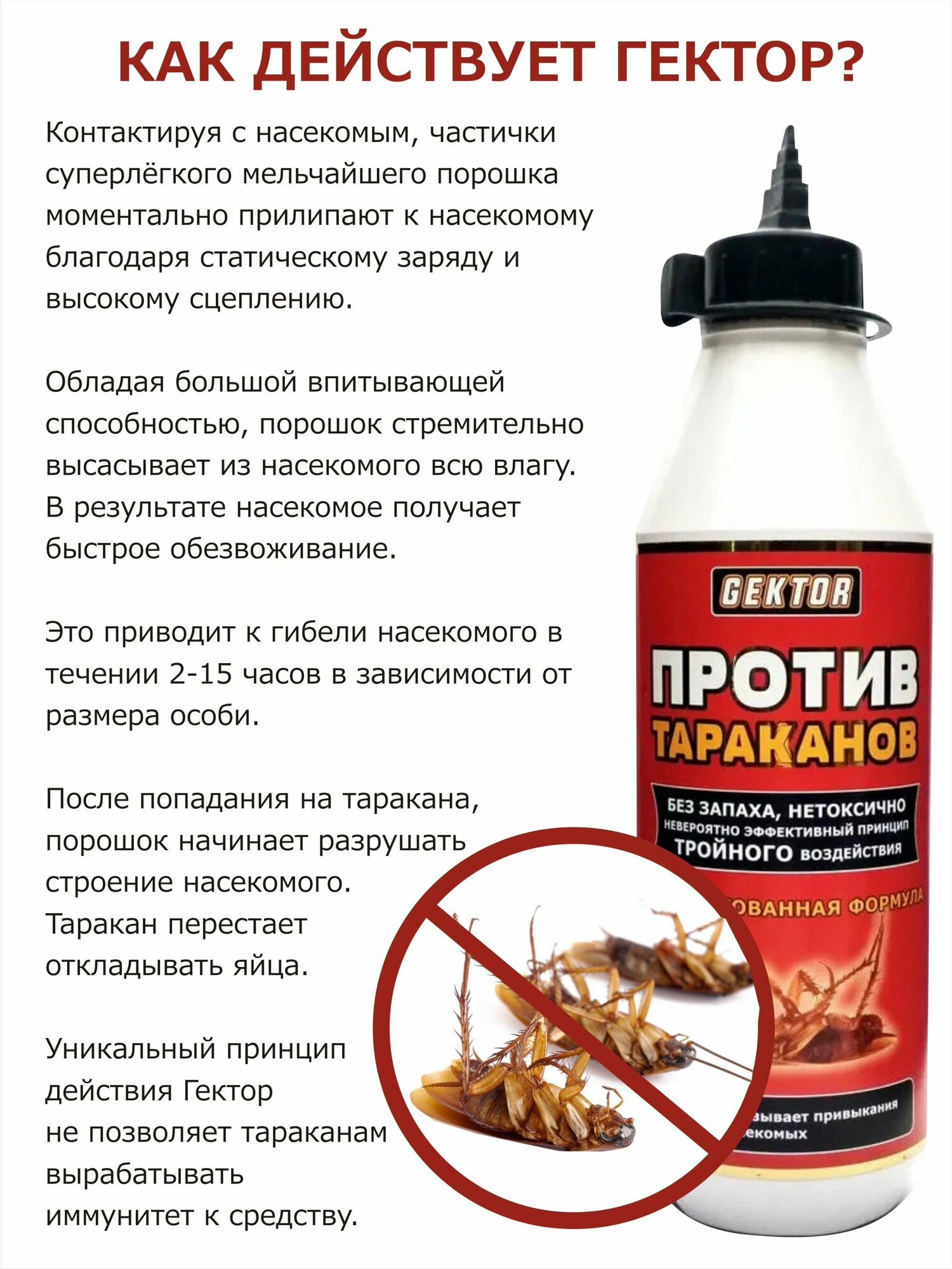 Гектор от тараканов 2 флакона по 150 г (500 мл) - эффективное и безопасное средство от тараканов, сверчков и чешуйниц.