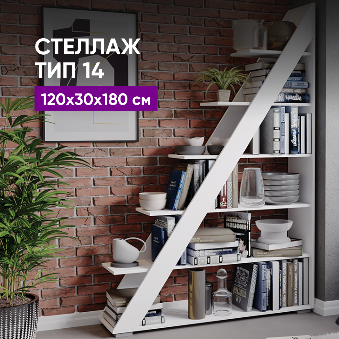 Стеллаж ТриЯ Тип 14 белый 120х30х180 см