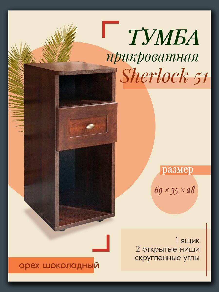 Тумбочка Шерлок 51, Цвет корпуса: орех шоколадный, Цвет фасада: орех шоколадный интересное: